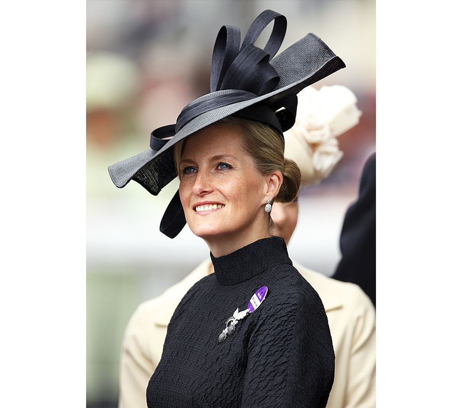 2014年:韋塞克斯郡伯爵夫人索菲(Sophie, Countess of Wessex)身著經典且莊重的服裝出席皇家阿斯科特賽馬會的第三天。她穿著黑色高領連衣裙,頭頂一個傾斜的帽簷和蝴蝶結。索菲喜歡穿黑色和白色的衣服,所以這看起來並不令人意外。