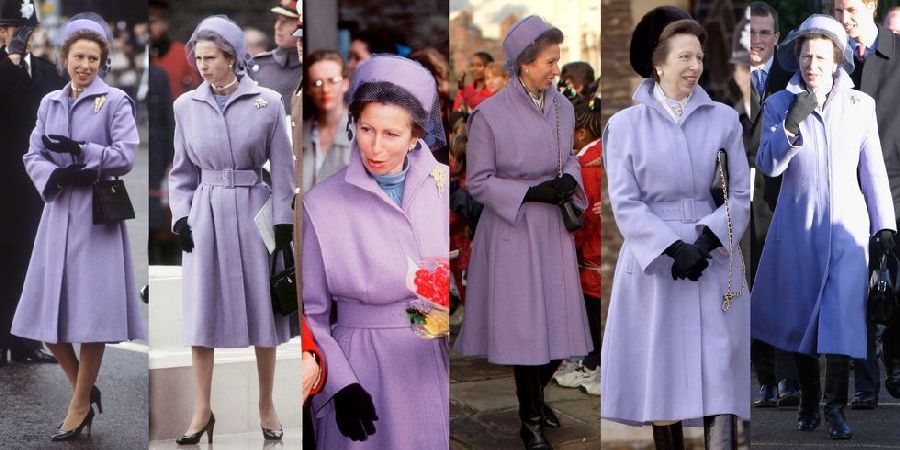 為了證明外套不一定要用黑色或海軍藍等基本色,安妮公主在1982年至2004年期間,至少6次公共場合都穿戴這襲紫色外套。包括於1982年11月16日時,穿著它迎接荷蘭女王碧翠斯(Queen Beatrix)的到訪。一年後的1983年11月2日,再穿著它出席在倫敦的蒙巴頓紀念雕像(the Mountbatten Memorial Statue)揭幕儀式。在90年代,這套紫色外套曾於1992年3月的國慶和1997年11月一場餐會中露面。在2001年和2004年的聖誕節,安妮公主也都穿戴著它出席。