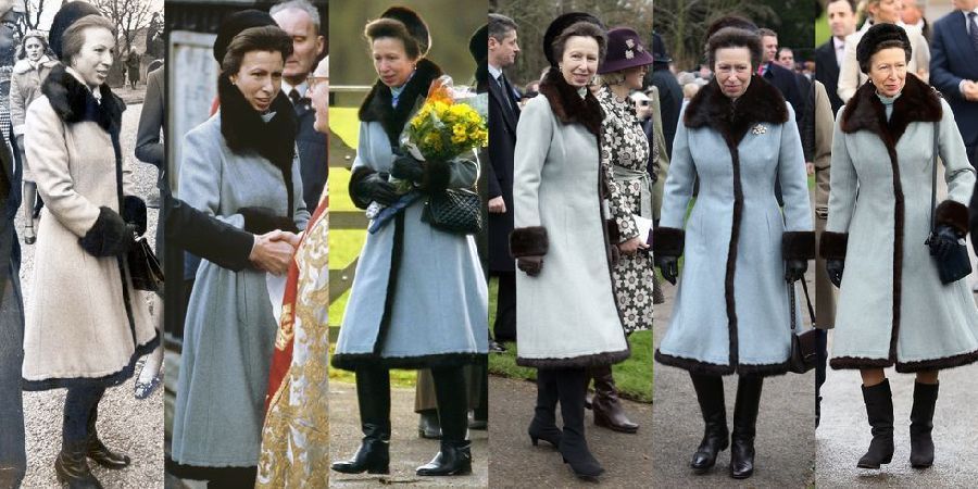 這件藍色襯裡毛皮大衣陪安妮公主度過50年的冬天。在她20多歲的時候,她就把它作為參加婚禮的服飾。它除了出現在1983年的一次活動中。後來成為她出席聖誕節晨課的首選。她在2003年、2006年、2008年和2012年的聖誕節,都穿著類似的帽子和高筒黑靴。