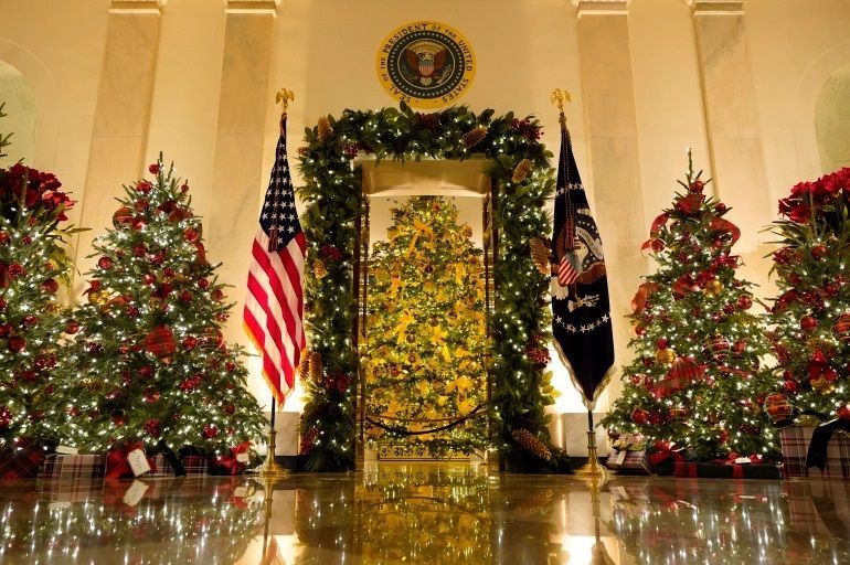 在2020年的感恩節週末期間,來自全美各地的125名志願者使用了62棵聖誕樹,106個花圈,超過366米的花環,超過3,200燈串和17,000蝴蝶結來裝飾白宮的132個房間。