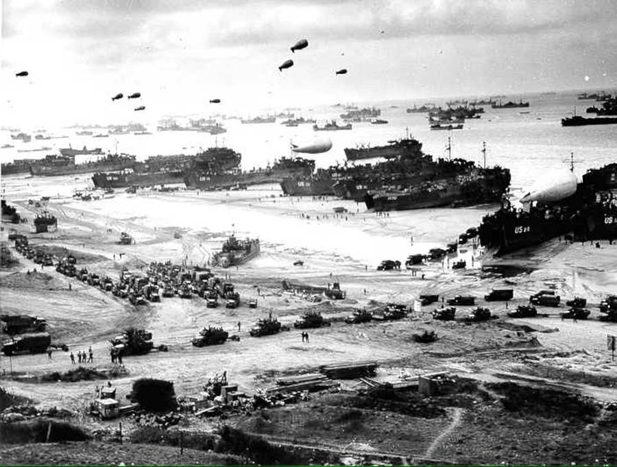 △ 1944年6月6日,在法国科勒维尔附近的奥马哈海滩,登陆部队已巩固了海滩阵地。