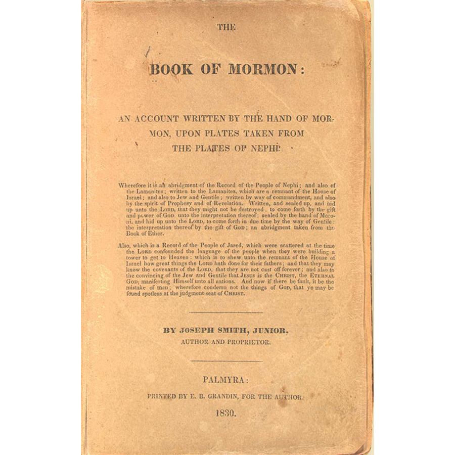 △ 《摩門經》(Book of Mormon)——這是「後期聖徒運動」(the Latter-Day Saint)的奠基之作,至今仍保持著最昂貴古董書籍的紀錄。2017年,手寫的原始印刷稿以3,500萬美元的價格售出(約今4,350萬美元)。這份《摩爾門經》探討各種教義主題,包含耶穌基督復活後在美洲大陸顯現的關鍵記述,應驗了聖經的預言,標誌著基督教福音的復興。