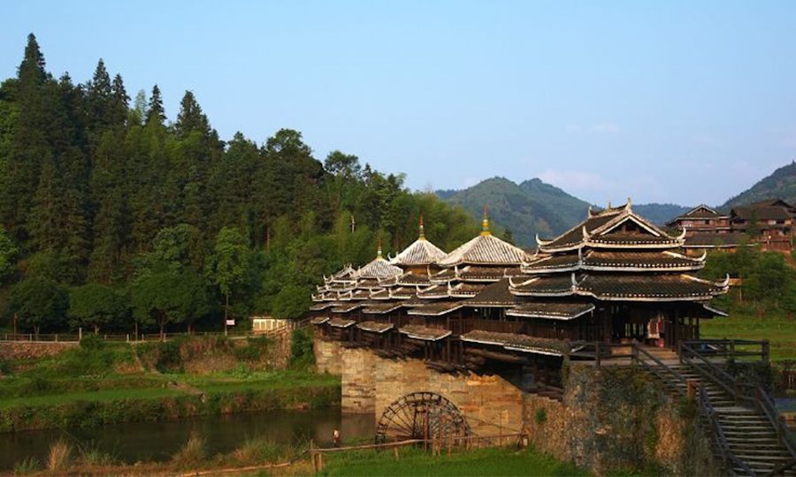 △ 程陽橋(Chengyang Bridge)︰程陽橋(也稱風雨橋、永濟橋)建於1916年,是中國廣西侗族地區最著名的風雨橋。這座橋橫跨柳州市的林溪河,至今仍在使用。它由木頭和石頭建造,沒有釘子或鉚釘,長64.4米,寬3.4米,高10.6米。