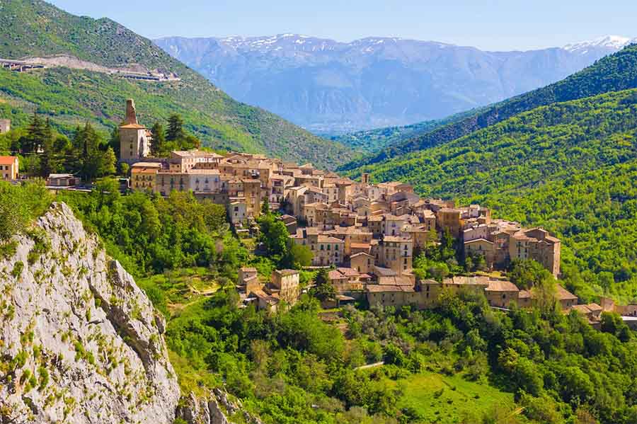 △ 阿布魯佐.帕森特羅(Pacentro, Abruzzo):帕森特羅飄浮在亞平寧山脈(Apennine Mountain Range)的高原上,就像一座天空之城。 這座保存完好的中世紀村莊,其歷史可以回溯到8世紀或9世紀。至今仍位於馬傑拉國家公園(Majella National Park)海拔2,133英尺處。它的自然環境也與小鎮融為一體:其標誌之一是清澈透明的水,這些水來自當地的泉水和附近山脈的融雪,當地的工匠使用當地的白色石頭來製作兵馬俑。(1,139人)