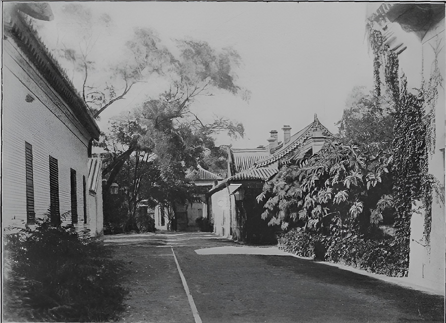 △ 英國公使館入口:英國公使館坐落在北京東交民巷北邊玉河西岸的梁公府。這座精美的古老宮殿,曾屬於皇室成員康熙帝七子允祜。照片展示的是第一庭院的入口。英國公使館建築群非常龐大,包含多個庭院,每個庭院周圍都有建築。這座建築曾經遭到暴民的襲擊,他們試圖消滅所有華的外國人,包括那些歐洲各國公使館的成員。