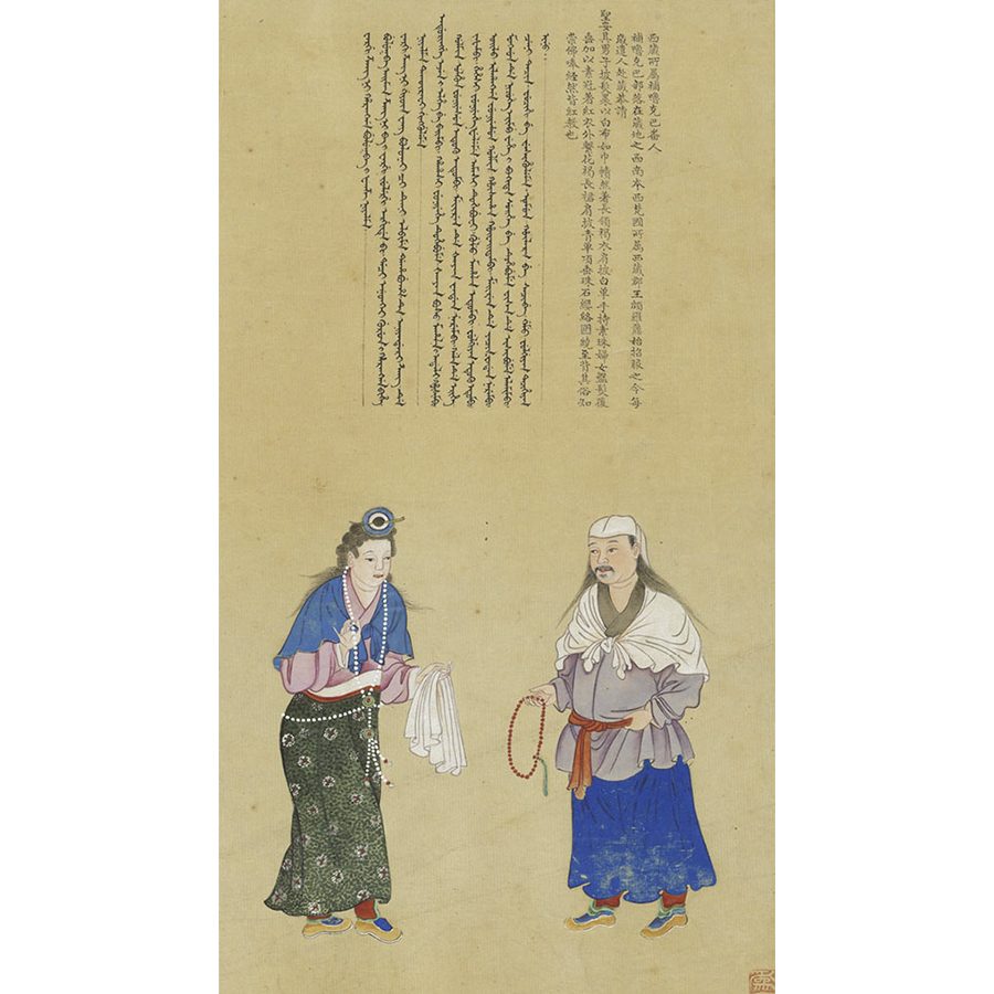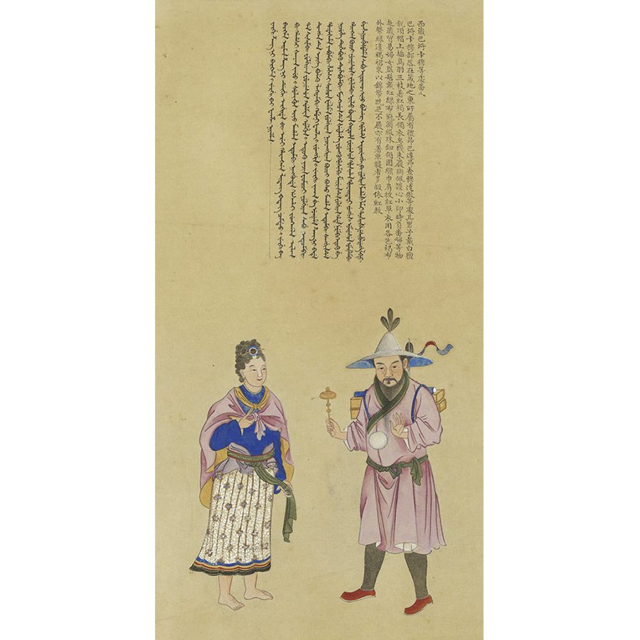 △ 西藏補瀂克巴番人︰補瀂克巴部族位於西藏西南部,原屬西梵國(古印度)管轄,由藏王颇罗鼐(Polhanas)率領,現每年派使者進藏,恭敬地向皇帝請安。男子披髮,裹以白布如巾,上衣粗布長領,肩披白披,手執素珠串。女子披髮,後披素帽,上衣紅色,下掖入粗布長裙,肩披黑披,頸戴長項鍊,珠石相間,繞於背,俗拜佛誦經,屬紅教。