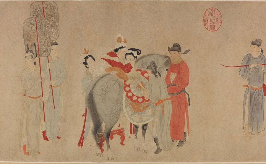 宋末、元初畫家錢選的《楊貴妃上馬圖》一直為皇室所收藏,現今收藏於美國弗利爾美術館。