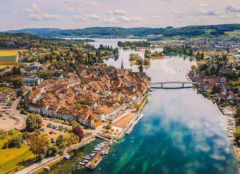 △ 施泰因(Stein am Rhein)︰施泰因是一座小而熱鬧的小鎮,位於瑞士(Switzerland)北部萊茵河(Rhine River)與康斯坦茨湖(Lake Constance)交匯處。迷人的老城區擁有保存完好的中世紀建築和鵝卵石小巷。有著精美彩繪外牆的歷史建築,賦予這座小鎮有童話般的地位。您可以沿著溫馨的海濱漫步,經過風景如畫的房屋,同時欣賞湖對岸的壯麗景色。感覺上,這裡是一顆隱藏的寶石,就像是從瑞士故事書中取出來的。這個小鎮很小,適合一日遊。