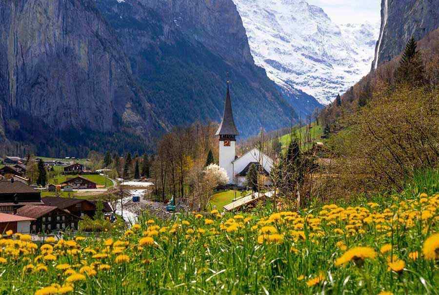 △ 勞特布龍嫩(Lauterbrunnen)︰勞特布龍嫩位於高聳的岩壁和山峰之間,是瑞士一個典型的鄉村。「勞特布龍嫩」翻譯過來就是「許多噴泉」,這暗示著勞特布龍嫩山谷中有72個令人驚歎的瀑布。您可以想像到,這裡有很多令人驚歎的徒步旅行和小徑。這個鄉村由許多傳統風格的小木屋建築組成,周圍風景如畫,它擁有色彩繽紛的高山草甸,就像是愛好自然者的天堂。勞特布龍嫩距瑞士首都伯恩(Bern)約一小時車程。此外,還可搭乘山區鐵路,輕鬆前往米倫-雪朗峰(Mürren-Schilthorn)和翁根-克萊恩(Wengen-Kleine)滑雪區。