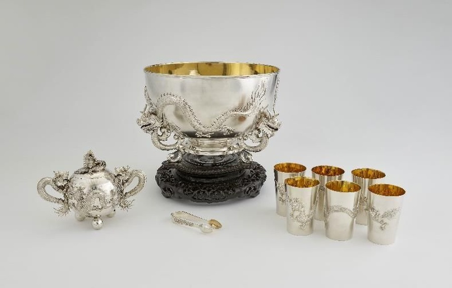 △ 閃亮的銀色打孔套裝。上海,1905 年。