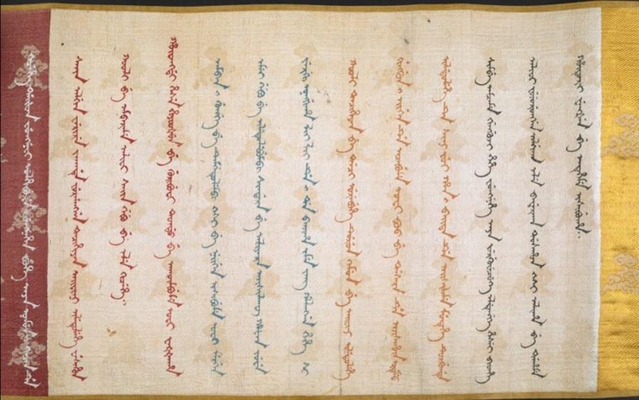△ 羊皮紙上的彩色書法。北京,1806年。