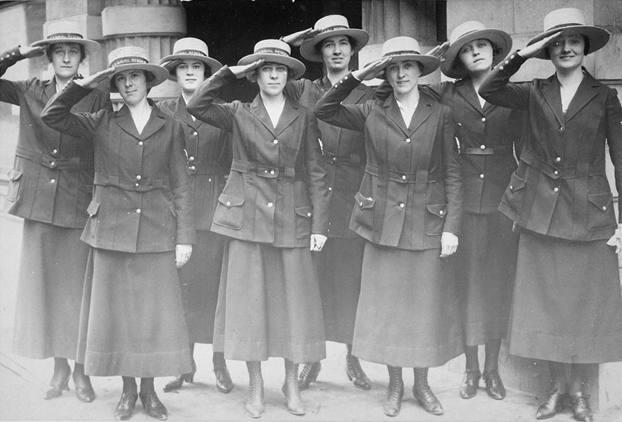 △ 幾位隸屬於海軍預備隊(Naval Reserve)的三藩市(San Francisco)女兵。拍攝時間︰1918年6月。