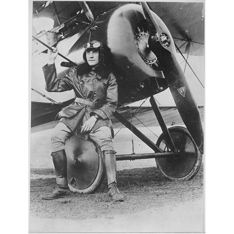 △ 著名作曲家卡羅爾(Earl Carroll)現在是美軍的一名中尉飛行員。他站在他值勤的偵察機旁邊。拍攝時間︰約1918年。