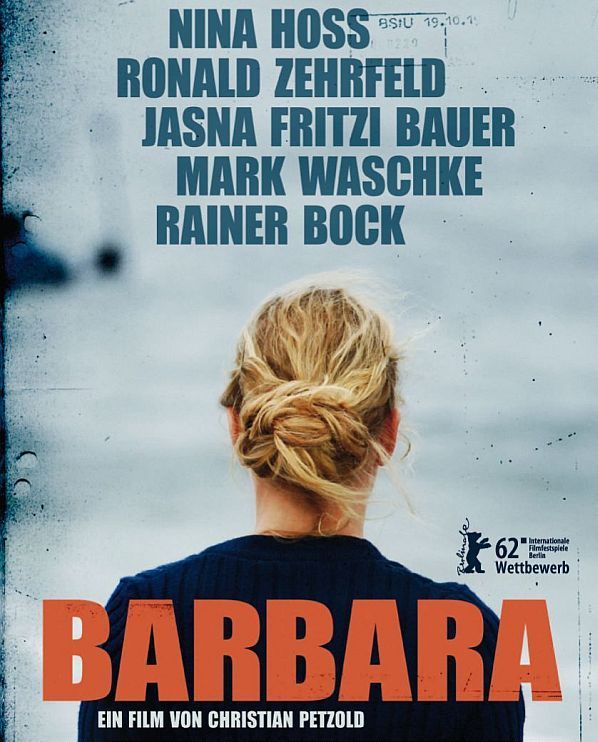芭芭拉(Nina Hoss 饰)是一名女医生,刚从老家柏林,给调到勃兰登堡(Brandenburg)乡间的一家小医院。芭芭拉浓眉大眼,双眸化着浓妆, 眼睑下的骨骼长得低,挺的鼻梁就像座小丘,高而窄的颧骨突在眼尾底下,靠近发际处。嘴唇宽,但不多话。五官十分凸显。神神秘秘。肢体表现不出她的喜怒哀乐。
