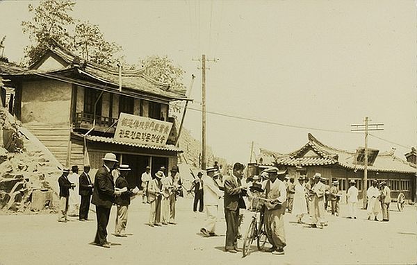 ▲  平壤街頭的傳道活動。攝於1930年代左右。