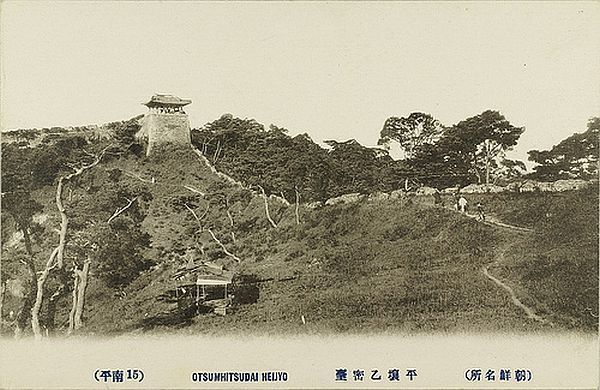 ▲  平壤,乙密臺和城牆。攝於1910年左右。