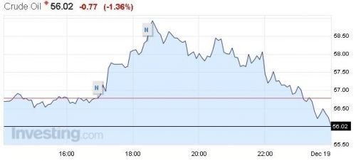 周三,美国能源信息署(EIA)公布的数据显示,截至12月13日当周,原油、汽油库存均远多于市场预期,美油迅速下跌,2月合约跌幅超2%,此后油价急速反弹,涨幅达4.5%。然而,美联储公布FOMC声明前1小时,油价开始滑落,此后数小时回吐了日内大部分涨幅。