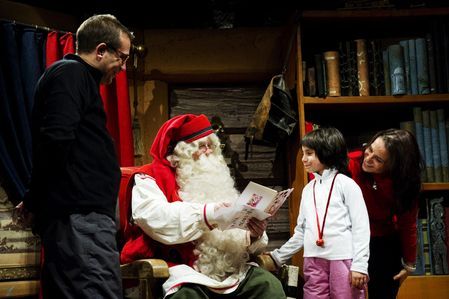 孩子们最期待的是圣诞老人坐着雪橇、赶着驯鹿从天而降,给他们带来小礼物。