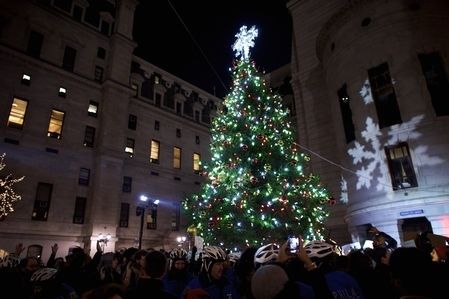 2014年12月3日,美国宾州,费城市政府圣诞树点灯仪式。