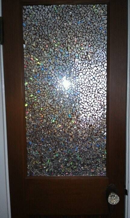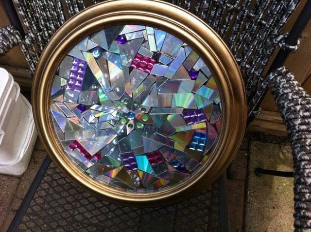 用CD碎片做成的茶几桌面是不是看起來很迷幻!把CD切成碎片然後貼上去吧!