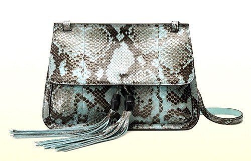 近年古驰Gucci似乎变得很低调,产品概念更加简约化,轻logo化,从设计方面更加重视缀饰和主题风格。如此季2015度假系列以流苏元素,经典竹节元素,花卉元素,蛇皮图案元素等为主调,融合女士职场和女士生活2种场景释出的新品。往常经典竹节手把这次装饰成包扣是一小改变,是经典的延续也是简约美观的再造。整个系列和设计主题风格明朗,但是内在的奢华味道仍然不减!