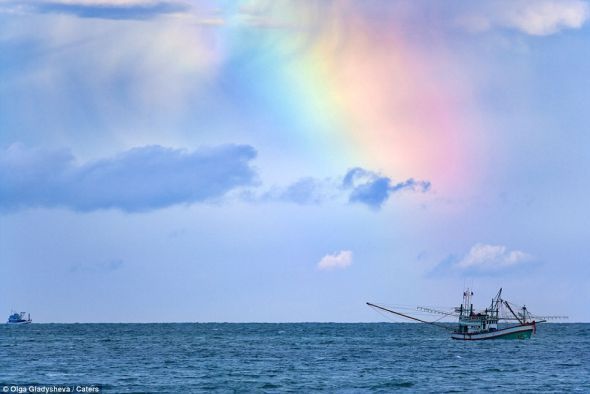 当时奥尔加所在的海滩名叫拉万(Rawai)。她说:“这是这次度假期间最惊喜的事情就是看到了这道特别的彩虹。我在傍晚的普吉岛看到这样美丽的彩虹,我之所以会觉得奇怪,是因为当时其它方向上面看不到有彩虹,就只有那么一段。这不是常见的拱形,而更像是天空中的一块彩色色块。”
