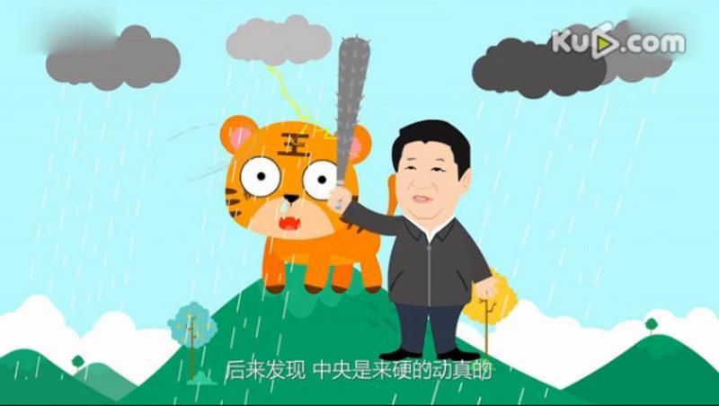 卡通版的中共總書記習近平揮 棒「打虎」