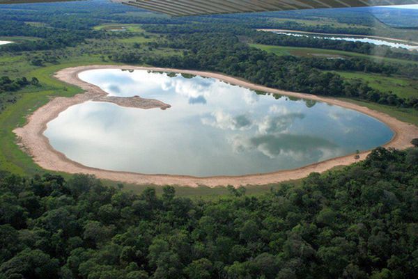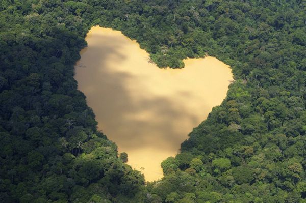 在巴西的西北部,亞馬遜河流域(Amazon River basin)的瑪瑙斯(Manaus)附近,有一個泉水湧出形成的心形湖。