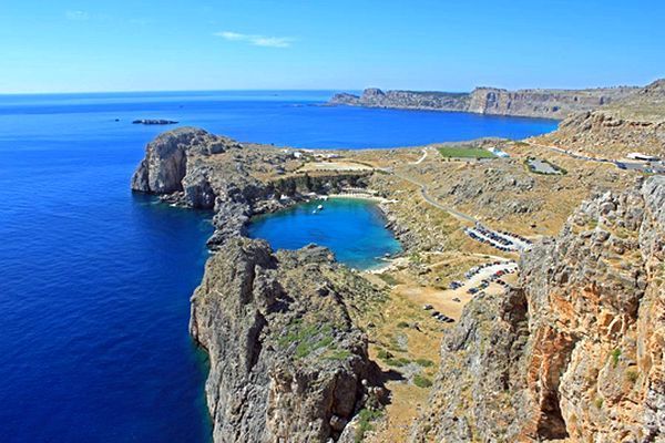 在希臘東南方的羅得島(Rhodes Island)上,從林多斯(Lindos)市衛城的頂部,可以看到心形湖(Heart-Shaped Lake)。