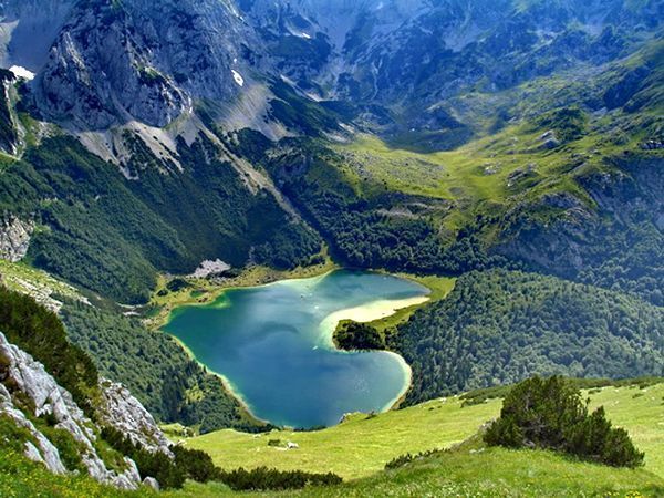 位於黑山(Montenegro,蒙特內哥羅)巨岩群山中的特爾諾瓦奇科湖(Trnovacko Lake)是一個心形湖。
