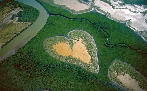 在大洋洲西南部的法屬新喀里多尼亞(New Caledonia),有一個心形湖(Coeur de Voh),其實是一片紅樹林的沼澤。