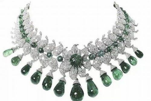 巴罗达大公夫人的珠宝被视为经典,超过300件的首饰收藏令人称奇!最华丽的,莫过于她在1950年订制的Baroda项链。由13颗总重达154克拉的梨形哥伦比亚祖母绿组成,悬浮在莲花形状的钻石中央。链身由几十颗祖母绿和钻石组成,熠熠生辉!令人称奇的是,这些宝石均来自巴罗达大公的王冠。