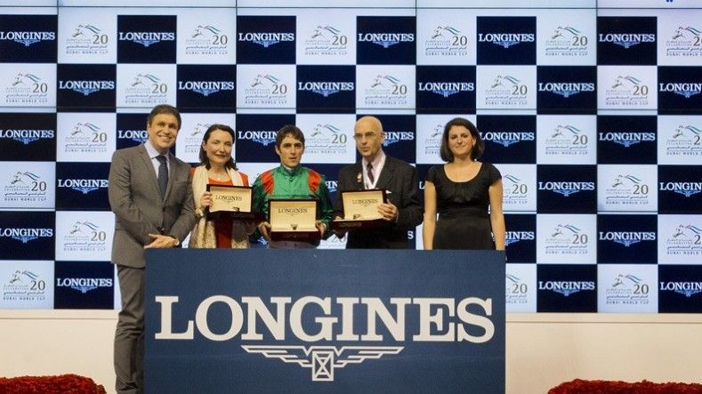 【新三才首發 楚鸞編譯】迪拜世界杯來臨,上周六,2015年3月28日,浪琴表推出其第第20版獨特手錶對迪拜世界杯表示慶祝。在迪拜经典赛呈现浪琴表一直都是最搶眼的亮點,為迪拜世界杯添彩不少。