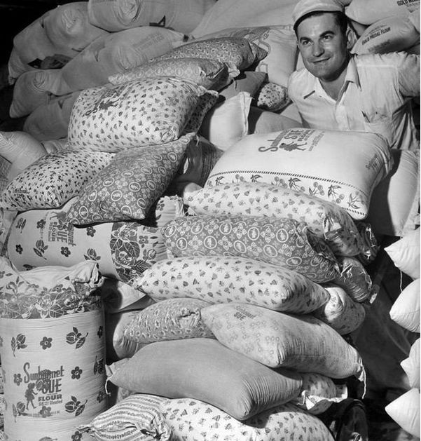 4、1939年的时候麵粉厂很贴心地用有图案花纹的布袋装麵粉,这样穷人家就可以用这些布袋做衣服。
