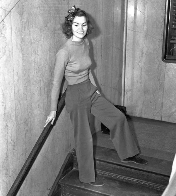 7、1938年,一位老师Helen Hulick是一起抢劫案的目击者,她因為在法庭上穿裤子,被法官认為藐视法庭,判她服5天的徒刑。