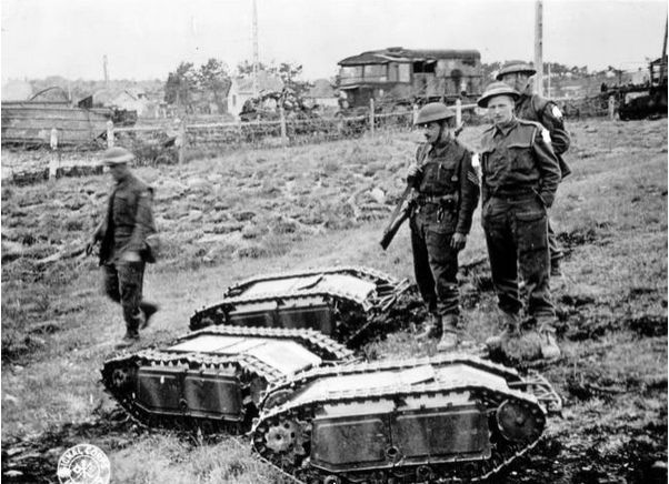 10、1939年到1945年第二次世界大战期间,英国士兵发现了这些德国军人送来的迷你坦克车,用来从下面把上面的大坦克车炸飞。