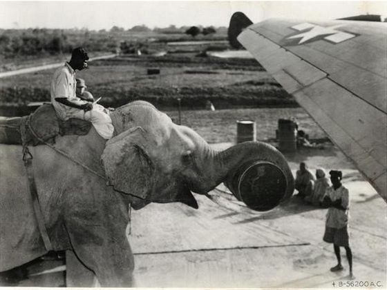 14、1945年有一隻大象帮运送补给品。