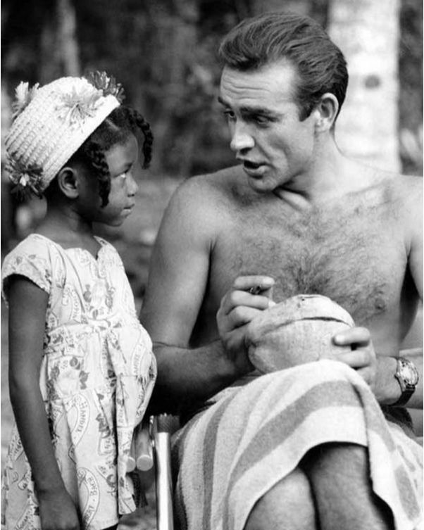 15、1962年拍的第一部庞德电影《第七号情报员》的演员史恩康纳莱(Sean Connery)在雅买加的拍摄现场為一位小粉丝在她的椰子上签名。