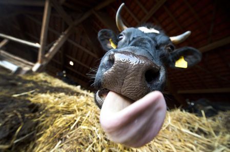 “世界舌头之最,谁来挑战!”----4月1日,一头牛在德国西部巴特菲尔伯尔附近的霍夫农场,正伸出长长的舌头。