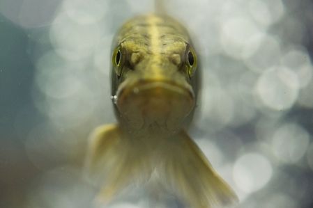 “别惹我,我超严肃,很容易火大。”----3月27日,德国东部爱尔福特一个博览会上,一只梭鱼的泳姿。