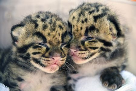 仅有的好姐妹。----2015年3月30日,美国佛罗里达州两只濒临灭绝的幼母云豹,出生于3月9日。