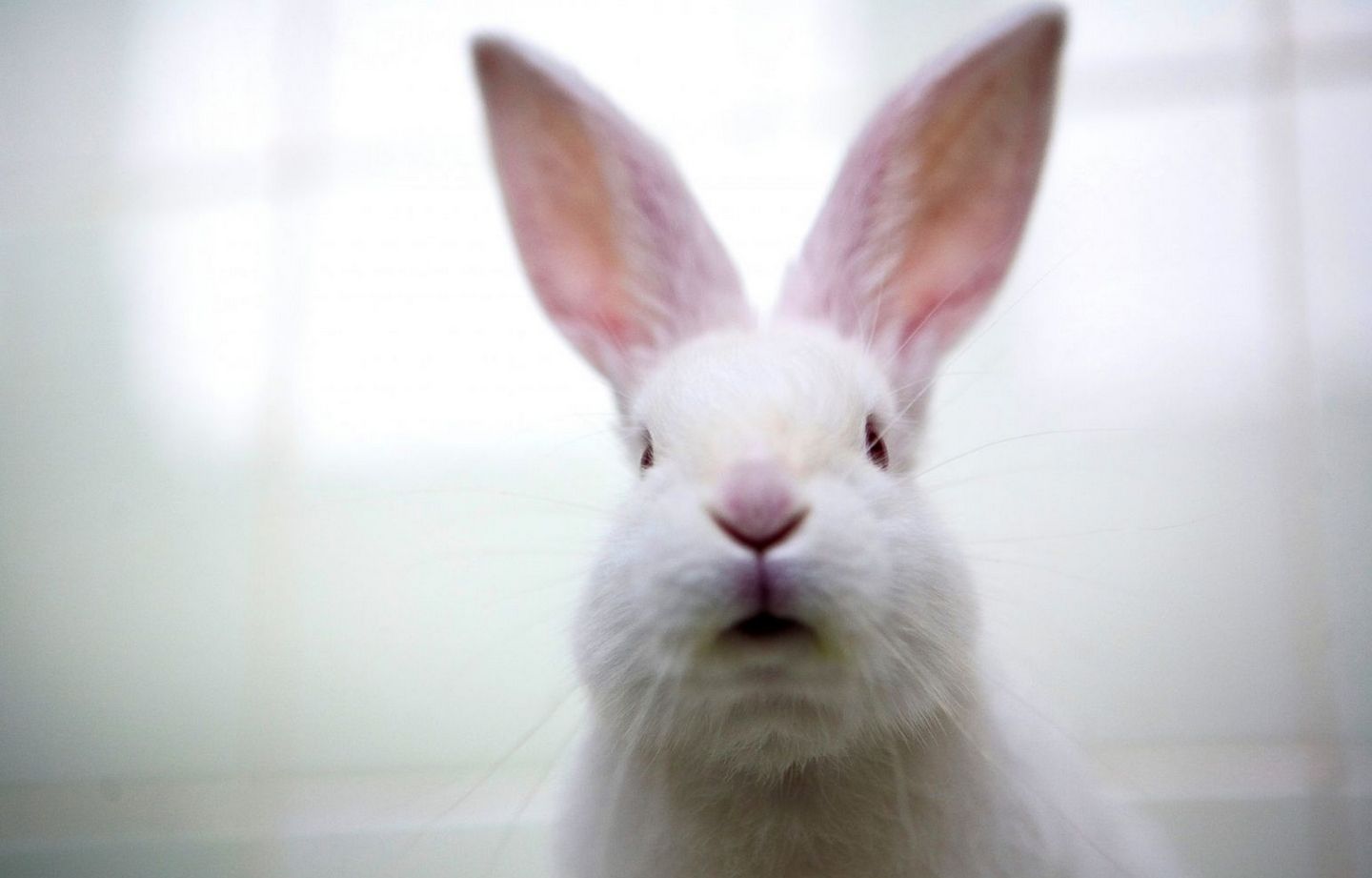 一隻白兔雙眼直視照相機鏡頭