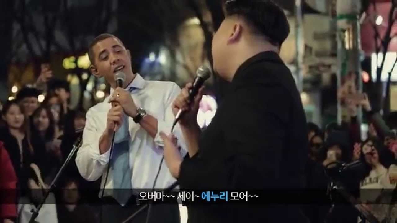 〝奥巴马〞与〝金正恩〞在街头合唱(视频截图)
