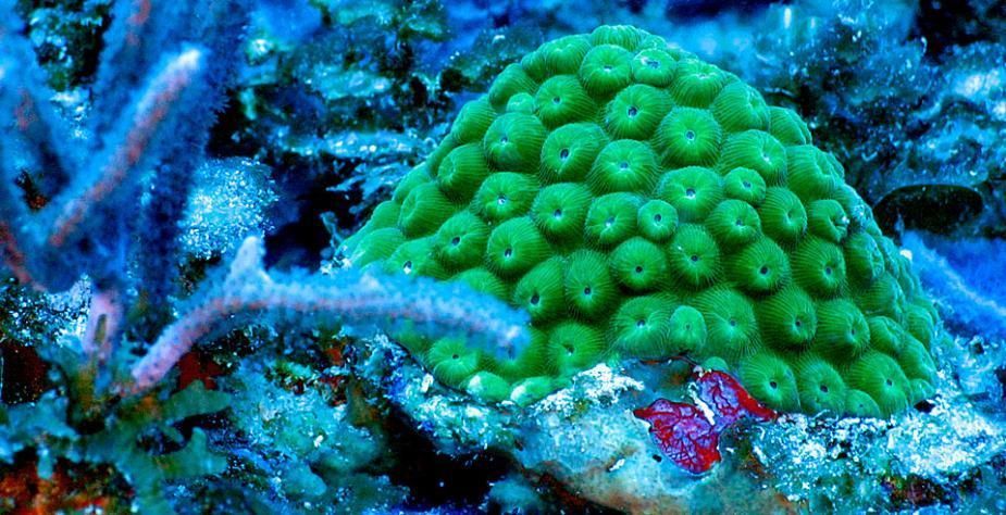 美國國家海洋大氣管理局2015年對加勒比海進行了海底測繪,期間“南希·福斯特”號船上的遙控海底車,拍攝了海床之上的景象。在美屬維爾京群島的珊瑚礁中,一小堆珊瑚坐落在珊瑚藻和海綿動物之間。
