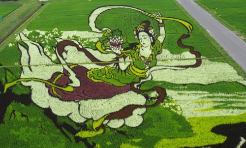 种用稻米种植出来的室外艺术,起源于90年代初日本青森县南津轻郡田舍馆村。当时,田舍馆村的村委会想提高当地村民的收入,于是便想出了这个主意。但他们也没有想到,这个点子竟然能如此奏效,如今,每年去田舍馆村的参观旅游人数已超过20多万人。