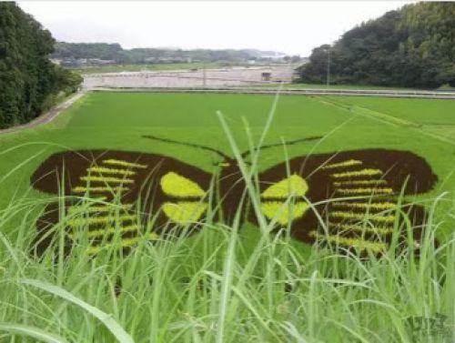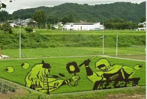 日本稻田画是一种被日本人称为“田んぼアト”的稻田种植画。稻田画图案有古今故事和人物、动漫形象等。受到麦田怪圈的启发,为了振兴当地经济,开发观光资源,1993年该村村民开始制作稻田画。每年题材都不同,题材涉及日本内外,非常广泛,既有日本著名的古代武将雄姿,也有蒙娜丽莎、拿破仑,甚至还有哆啦A梦这样的动漫形象。
