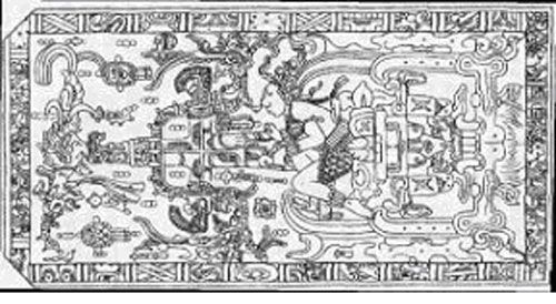 瑪雅文明的預示簡單來講,那可說是一幅太空人駕駛火箭的畫像。在一個噴着火焰的太空船中,有一位正在駕駛的男性太空人,火箭的外型頗像是美國的雙子星太空艙,前端突出,在其後則有儀錶,接着就是“仰卧”的太空人,他的左手正在按儀錶上的按鈕,右手則緊握住控制桿,更妙的是在其臉部鼻尖處,還有條連接在圓形氧氣瓶上的呼吸管,在其背後,則為複雜的容器、活塞等組件,最後則是強力的引擎,有四支排氣管,向後正噴出火焰。在石棺蓋四周的邊緣,還雕刻着複雜象徵太陽、月亮與星星的圖案。探險隊的隊員們在細看這幅圖案後,判斷這是艘航行於星際間的太空船,因而個個都感到不可思議,有幾位甚至震驚到目瞪口呆,等冷靜後才拍攝了照片,整個事件也傳了開來而為世人所知。是誰畫了這太空船的原始構圖?