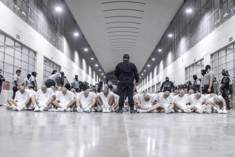 △ 3月︰這張由薩爾瓦多(Salvadora)政府發布的照片顯示,3月16日,在薩爾瓦多特科盧卡的恐怖主義拘留中心(Terrorism Confinement Center),近280名被美國驅逐出境的囚犯——據稱與犯罪組織有關聯——被關押在那裡。有一份監督機構的報告指出,這些被拘留者遭受了酷刑和虐待。