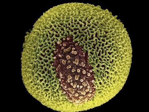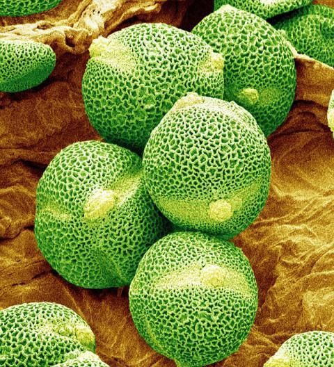 這些結構奇特的物體看起來像精美的抽象藝術作品,可以放在畫框里,掛在牆上。但實際上顏色艷麗的它們是你最不願意在家裡看到的東西,尤其是你患有花粉熱。因為它們是在掃描電子顯微鏡下看到的可誘發過敏的花粉粒。