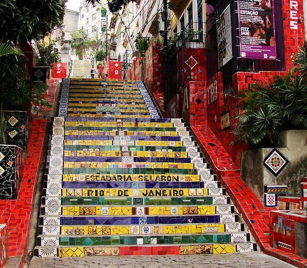 這個世界著名的階梯,被稱為「塞勒隆階梯」(Escadaria Selarón),是由智利藝術家塞勒隆(Jorge Selarón, 1947-2013)花了近20年才拼貼完成。